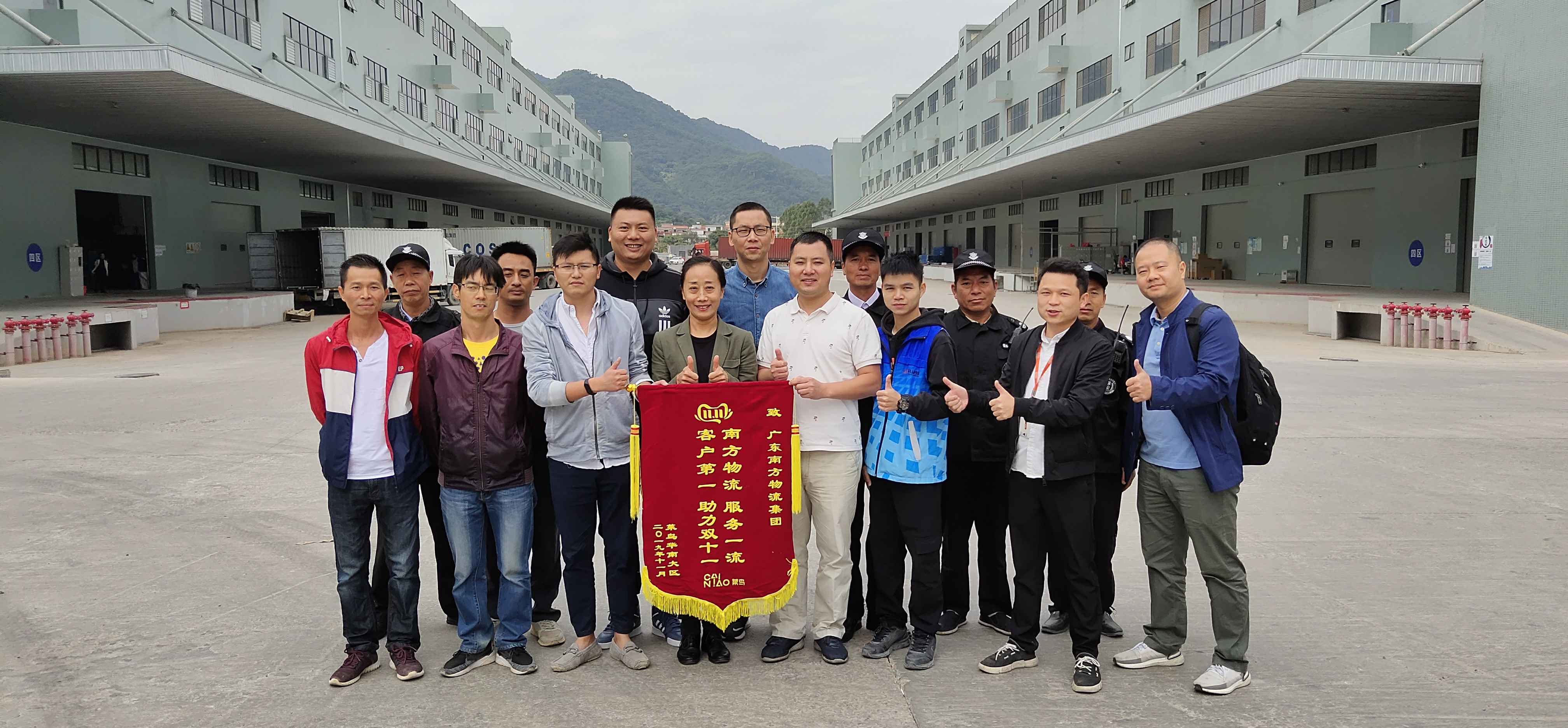 11月29日,开云·网站入口站官网登录-开云(中国)收到菜鸟华南大区的一份特殊礼物,该公司工作人员向南香谷运营管理团队赠送一面写有“开云·网站入口站官网登录-开云(中国) 服务一流 客户第一 助力双十一”的锦旗,对其高效、贴心服务表示感谢。